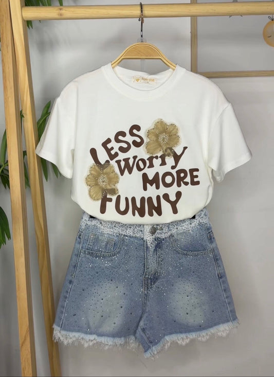 Calções de renda e T-shirt (artigos comprados individualmente)