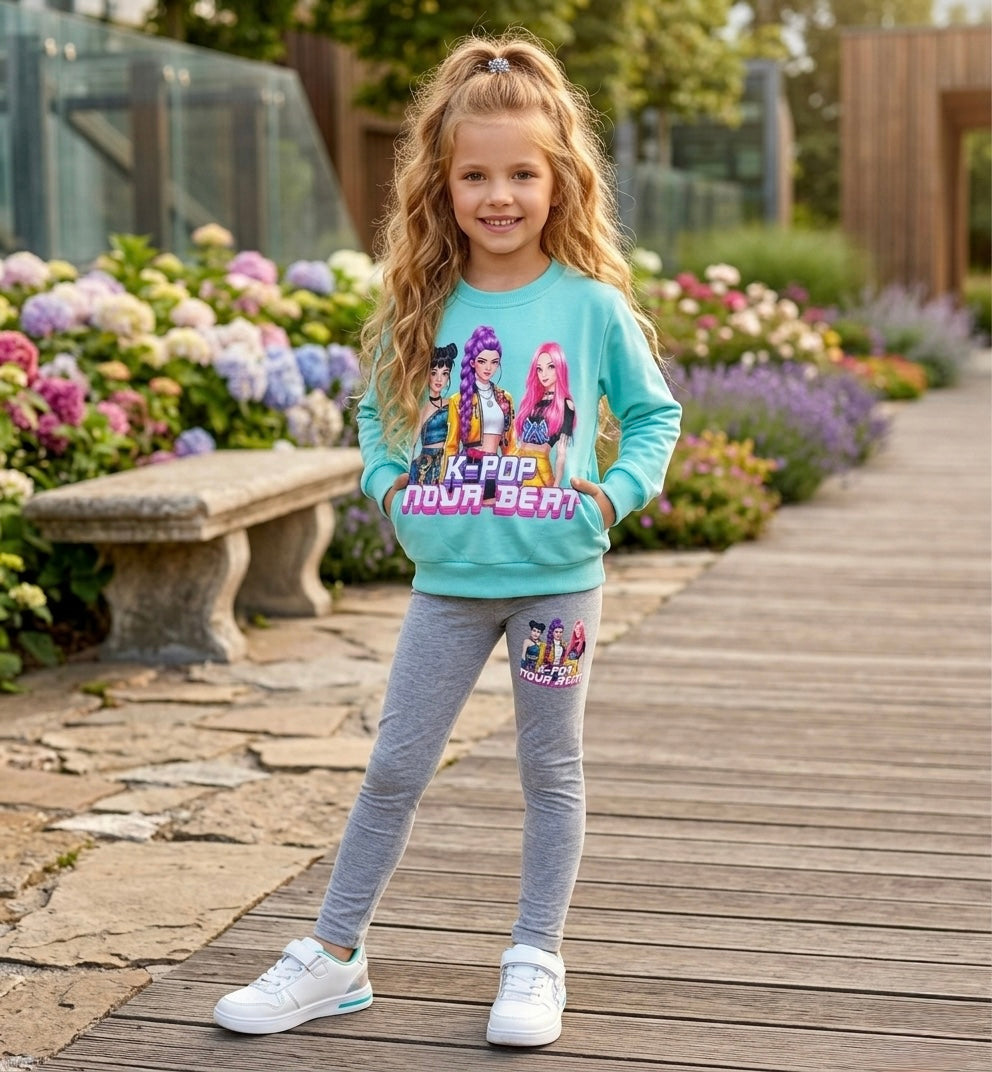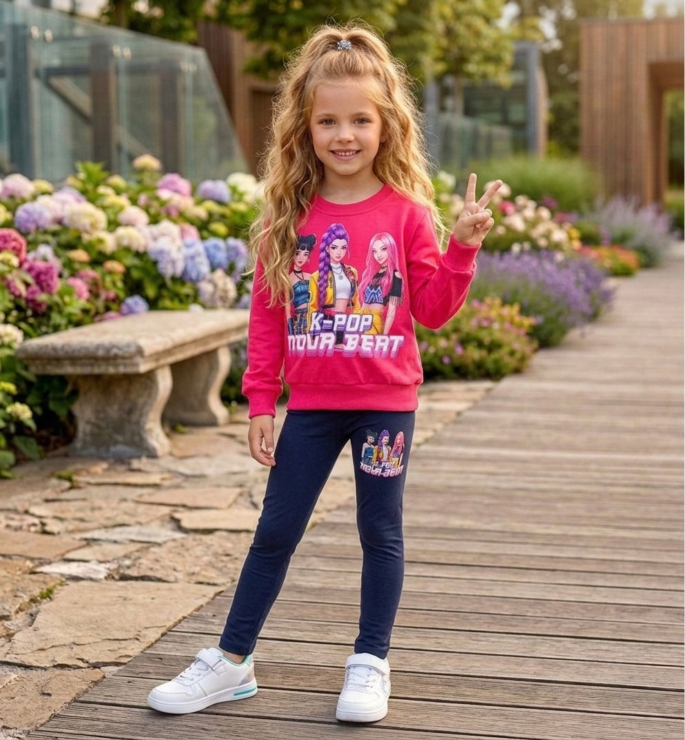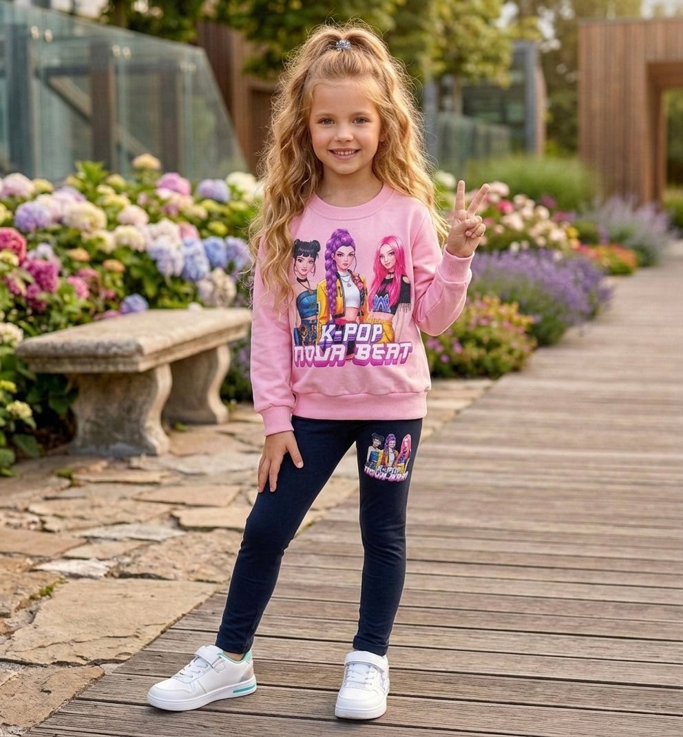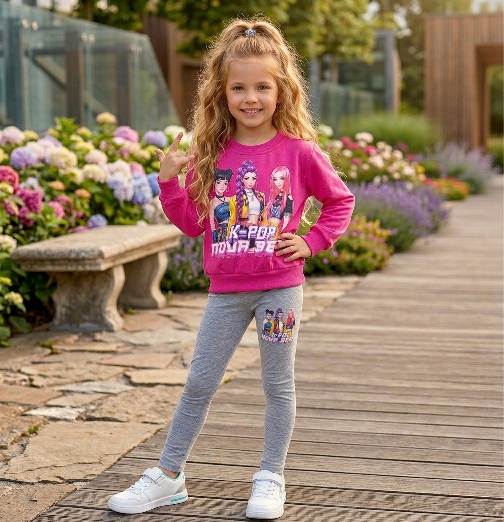 Conjunto infantil Huntrix composto por 2 peças (sweat e leggings).