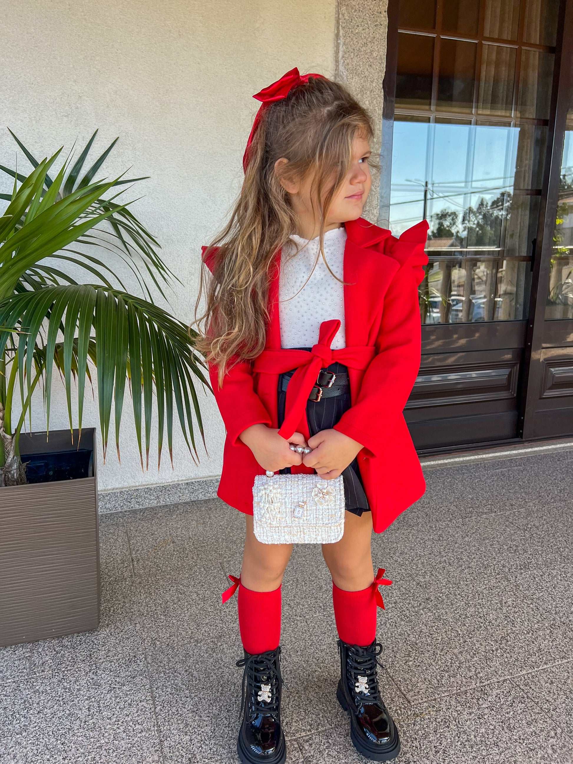 Meias até ao joelho com laço de cetim.